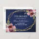 Navy Blue Burgundy Floral Moving Announcement
