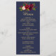 Navy Blue Burgundy Floral Script Wedding Menu - Let your guests know what is on the menu for your wedding reception using this Elegant Script Watercolor Burgundy Floral on Navy Blue wedding themed wedding menu. See the rest of the invitation suite in my store.