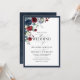 Navy Blue Burgundy Floral Watercolor Script Invitation