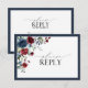 Navy Blue Burgundy Floral Watercolor Script RSVP Card