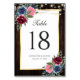 Navy Blue Burgundy Pink Gold Rustic Wood Floral Table Number