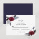 Navy Blue Burgundy Red Gothic Floral Wedding RSVP Card