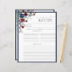 Designed to accompany our matching Bridal Shower Recipe Binder, part of a matching Bridal Shower Invitation Suite, this pretty recipe card features a bouquet of navy blue and burgundy flowers, bordered in navy blue and pretty hand lettered script calligraphy. There are plenty of lines for the recipe, and the back matches the front, so each guest can give the bride two recipes. A margin has also been left on the page to accommodate the margin. Part of a co-ordinated suite. View suite here: https://www.zazzle.com/collections/elegant_navy_blue_burgundy_botanical_bridal_shower-119592964187643986 Contact designer for matching products. Copyright Anastasia Surridge for Elegant Invites, all rights reserved.