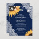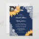 Navy Blue Burlap and Lace Sunflower Wedding Invitation