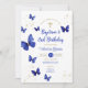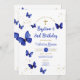Navy Blue Butterfly Boy Girl 3rd Birthday Baptism Invitation