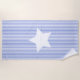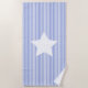NewparkLane - Modern design Beach Towel, with a navy blue & white cabana striped pattern, and a big white star. Easy to customise in Zazzle with your own text for a personalised design.