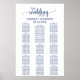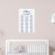 This navy blue calligraphy head table wedding seating chart poster is perfect for an elegant wedding. The white and blue design features chic rustic typography and a lovely romantic heart. This wedding poster includes enough room for up to 14 tables including a head table (about 145 guests). In addition to the placement of each guest, personalise this sign with the names of the bride and groom and the wedding date.