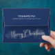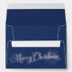 This design features a merry Christmas envelope with navy blue and silver, a modern minimalist, elegant, calligraphy script, a return address on the back flap, simple typography, and a stylish, trendy contemporary, holiday style.