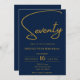 Navy Blue Calligraphy Seventy 70th Birthday Invitation