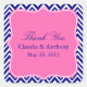 Navy Blue Chevron Pattern with Hot Pink Thank You Square Sticker