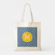 Navy Blue Chevrons with Custom Yellow Monogram Tote Bag