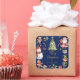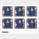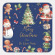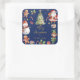 Navy Blue Christmas Santa Elf Snowman Gingerbread Square Sticker
