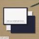 Make a lasting impression with our Simple Navy Blue Classic Typographic Border. This professional note card showcases your company name in classic navy typography, while the area below provides space for your address, contact information, or custom text in elegant golden typography. The white space for your note is framed in dark navy blue for a professional touch. The back of the card is solid navy, adding to its timeless appeal.