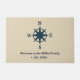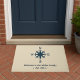 navy blue compass on beige & welcome Family Name Est. Year doormat