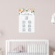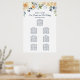 Add your own special touch to this elegant watercolor floral design featuring modern script, navy blue text and navy blue and coral peach roses and wildflowers This seating chart design features the bride and groom's names along with the words "Eat, Drink, and Be Merry" and "Please Find Your Seat". Templates are provided for up to seven tables with up to 8 or 9 names per table.