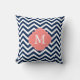 Navy Blue Coral Zigzag Pattern Monogram Cushion