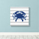 Navy Blue Crab Grey and White Stripes Canvas Print