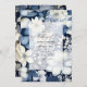 Navy Blue, Cream and Silver Floral Wedding Invitation