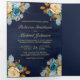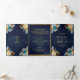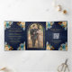 Navy Blue Cream Floral Gold QR Code Photo Wedding Tri-Fold Invitation