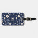 A navy blue background with a retro style floral pattern in white and cream. Personalise and add your monogram letter, initial. Your contact information on the back.