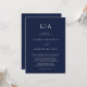 Navy Blue Cream Monogram Simple Minimalist Wedding Invitation