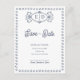 Navy Blue Crest Save the Date Card | Elegant Monogram Formal Wedding Announcement with Solid Back .