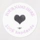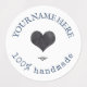 Custom logo navy blue waterproof food labels. Cute personalised round rustic stickers with custom typewriter text, leaves decor and an heart. You can change the heart with your logo, image or any decoration. Cute, elegant and very warm food labels.