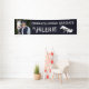 Custom photo graduation congratulations banner done in navy blue, with white custom text. Graphics of a white and silver tone diploma decorates the bottom right corner. Personalise the text and photograph to suit your graduation event needs.