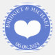 NewparkLane - Modern design, personalised Round Sticker, with a navy blue striped pattern and a blue frame with a heart and your names in an elegant font.