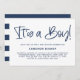 It's a boy! Cute and simple baby shower invitation featuring a navy blue cute modern calligraphy with stripes pattern. Personalise by adding names, date, time, venue and other details. This navy blue and white baby shower invitation is perfect for any seasons and theme.