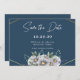 Navy Blue Daisy Floral Wedding Save the Date Invitation