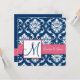 Navy Blue Damask Monogram Invitation Honeysuckle