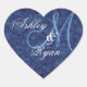 Navy Blue Damask Wedding Custom Monogram Heart Sticker