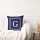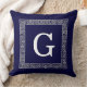Navy Blue Dark Grey Greek Key #1 Framed Monogram Cushion