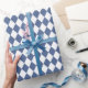 Navy Blue Diamond Harlequin Pattern Gift Wrapping Paper. Blue and white.