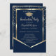 Navy Blue Diamonds Gold Graduation Cap Graduation Invitation