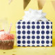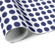 A wrapping paper designed with a navy blue dot pattern on a white background. Customize the white background among other options.