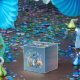 I hope you like this blue abstract background with a blue dragon in a field of wildflowers. Matching invitations and party supplies are available in this collection suite.
