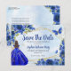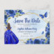 Modern Navy Blue Gold Glitter Sparkle Floral Rose Butterfly Princess Quinceañera Birthday Save the Date Announcement