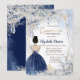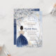Navy Blue Dress Girl, Blue Flowers Quinceanera Invitation