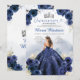 EDITABLE Navy Blue Dress Princess Silver Crown Quinceañera Invitation