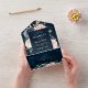 Navy Blue Dusty Blush Pink Floral Wedding All In One Invitation