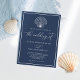 Navy Blue Elegant Beach Seashell Wedding Invitation