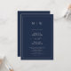 Make the perfect choice for your wedding invite with this exquisite design for your fall, winter, or autumn celebration. With its timeless elegance and modern simplicity, this invitation sets the stage for a sophisticated affair. The rich navy blue hue evokes the cosy warmth of the season, while the delicate border design adds a touch of refinement. Personalised with your monogram, it exudes bespoke charm, reflecting your unique style. Perfect for couples seeking understated luxury, its sophisticated allure promises to leave a lasting impression on your guests. Elevate your wedding with this elegant invitation, a true symbol of love and sophistication.