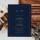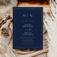 Navy Blue Elegant Border & Monogram Wedding Invitation