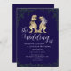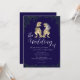 Navy Blue Dinosaur Wedding Invitation Fun Modern T-Rex Bride and Groom Design