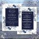 Navy Blue Elegant Floral All In One Wedding Invitation