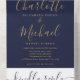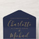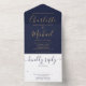 Navy Blue Elegant Gold Script Minimalist Wedding All In One Invitation