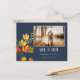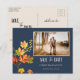 Navy Blue Elegant Photo wild Leaves Save the Date Postcard