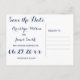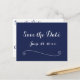Navy blue elegant Save the Date wedding postcards with changeable white text